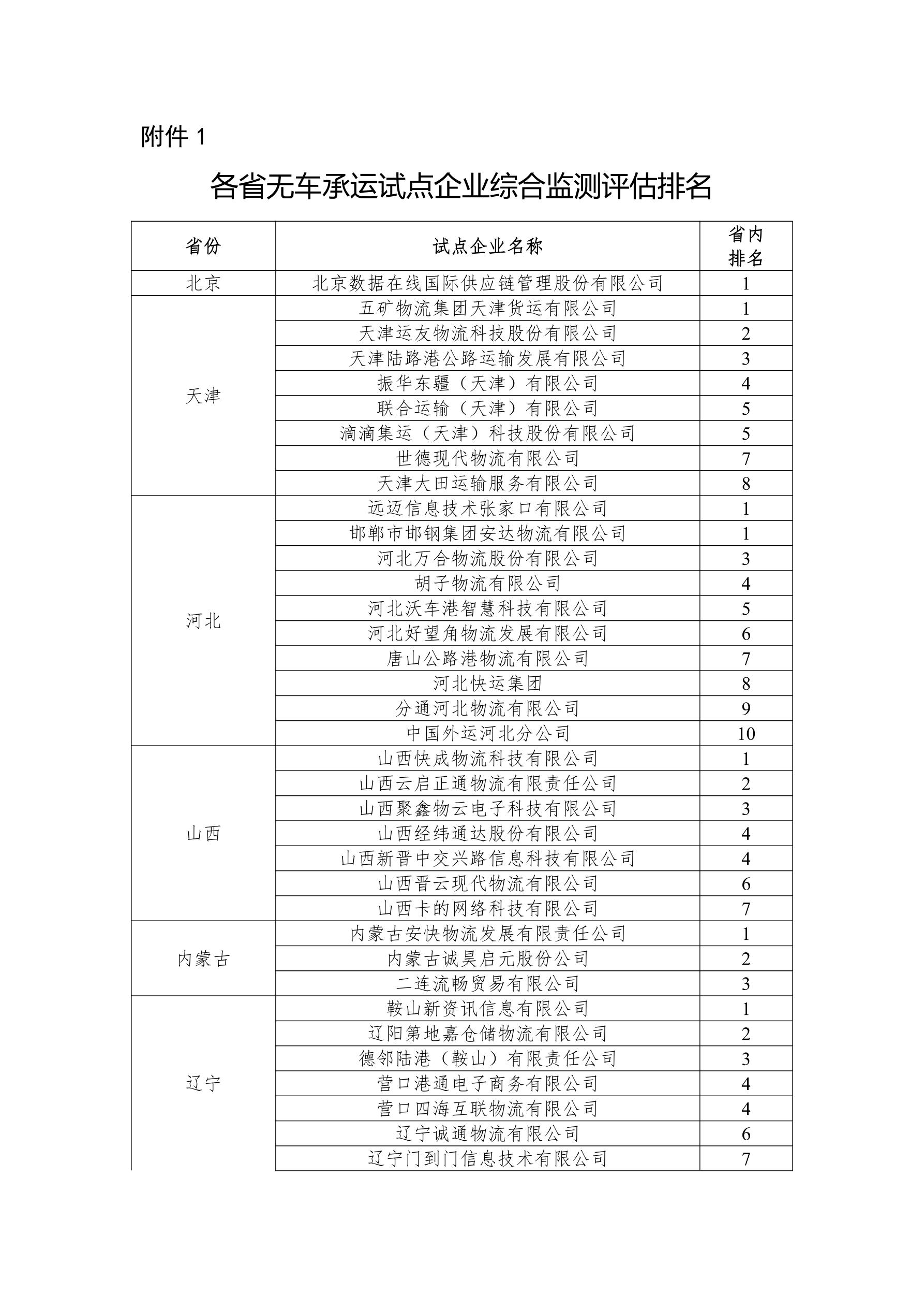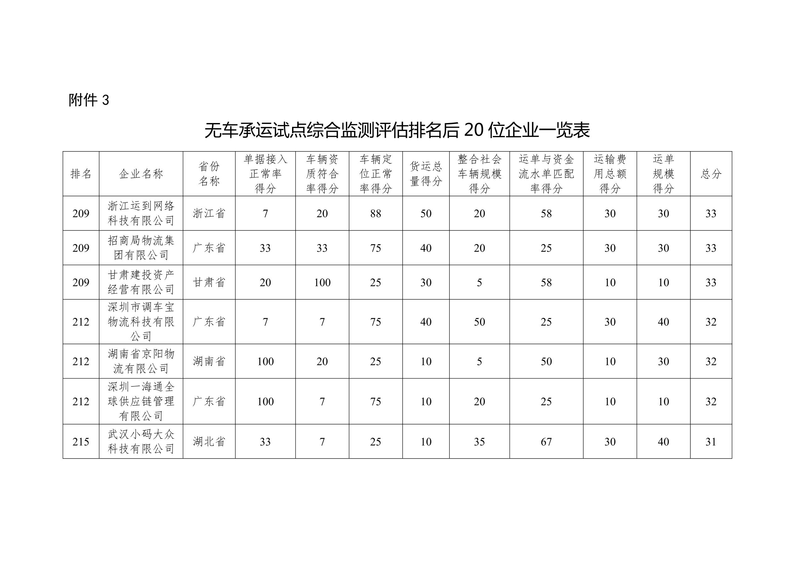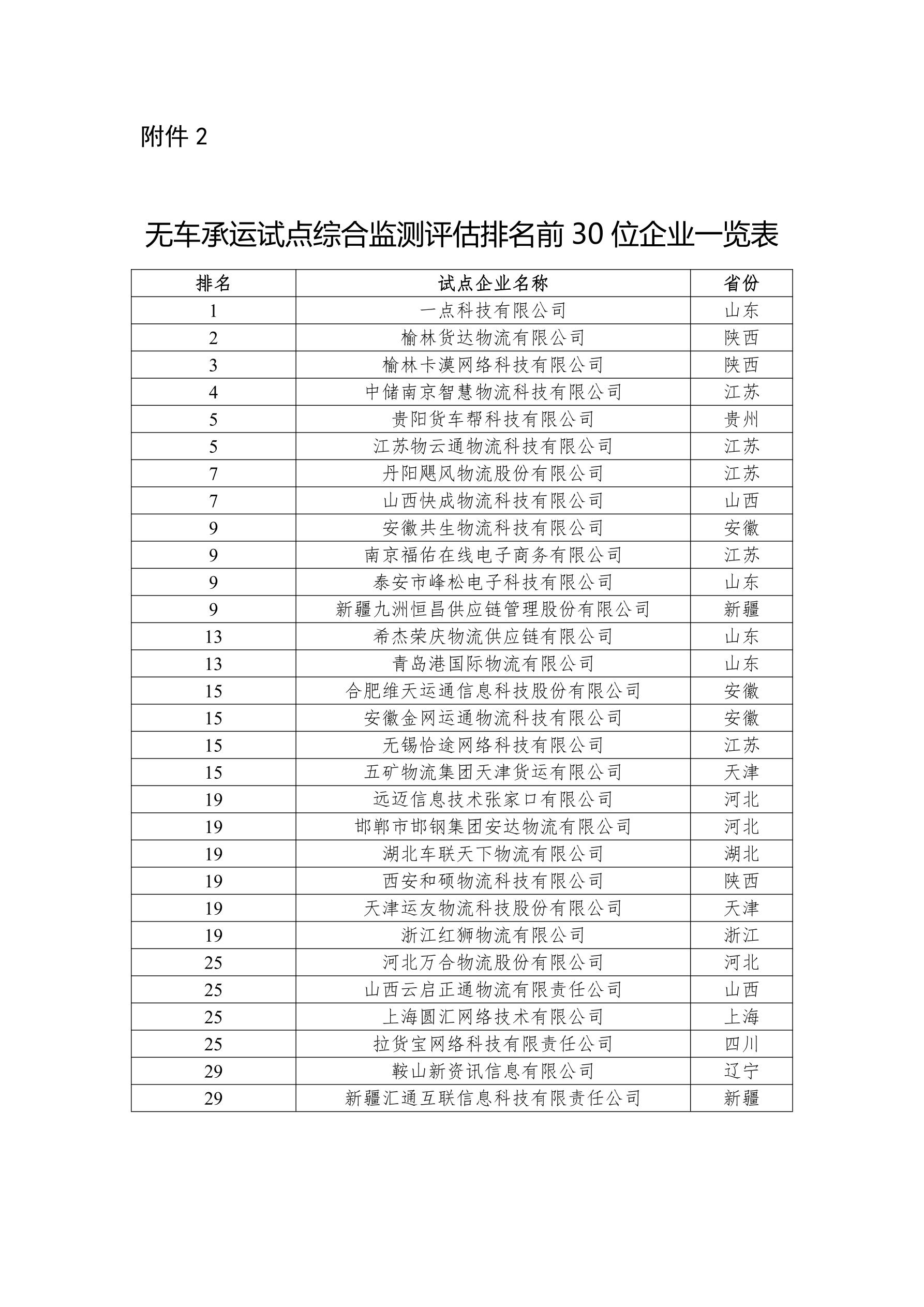 按照《交通運(yùn)輸部辦公廳關(guān)于深入推進(jìn)無車承運(yùn)人試點(diǎn)工作的通知》(交辦運(yùn)函〔2018〕539號(hào))的工作安排,我部對(duì)試點(diǎn)企業(yè)進(jìn)行綜合監(jiān)測(cè)評(píng)估排名(詳見附件)?,F(xiàn)將有關(guān)情況通報(bào)如下: