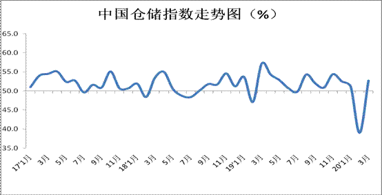 中國物流與采購聯(lián)合會發(fā)布的2020年3月份中國物流業(yè)景氣指數(shù)為51.5%,較上月回升25.3個百分點;中國倉儲指數(shù)為52.7%,較上月回升13.7個百分點。