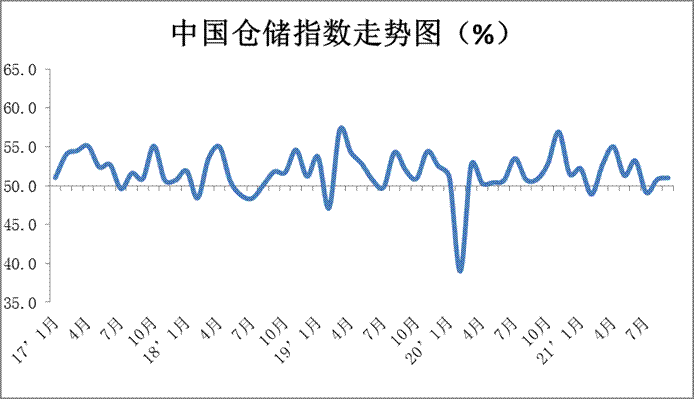 中國物流與采購聯(lián)合會發(fā)布的2021年9月份中國物流業(yè)景氣指數(shù)為54%,較上月回升4.5個百分點;中國倉儲指數(shù)為51%,較上月回升0.2個百分點。