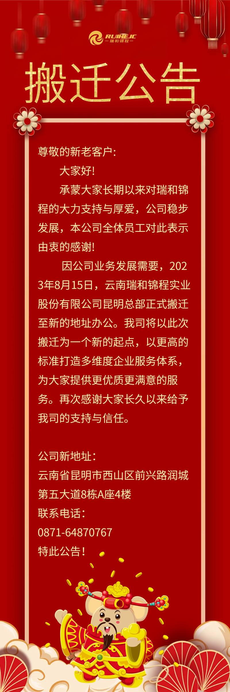 新聞動(dòng)態(tài) 業(yè)務(wù)推介 黨建工會(huì) 電子刊物 公示公告 首頁(yè) > 企業(yè)資訊 > 公示公告 搬遷公告 來(lái)源:瑞和錦程 瀏覽量:7779 日期:2023-08-15 下一篇:瑞和錦程關(guān)于申報(bào)首屆“云嶺慈善獎(jiǎng)”的公示